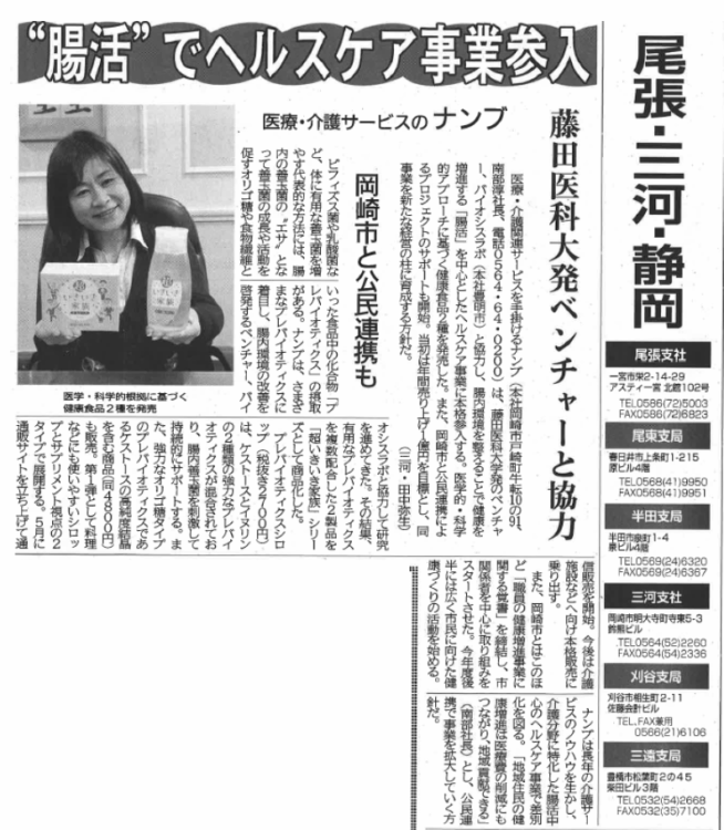 中部経済新聞に「腸活事業」の記事が掲載されました。