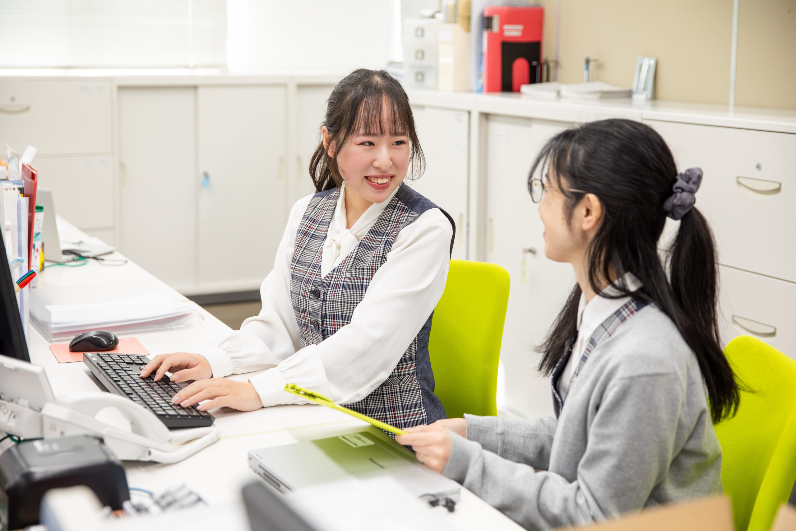 電話対応をしながら複数の業務を同時に進める場面も多く、優先順位を意識しながら仕事を進めています。すべての業務を期限内に整理し終わったときには、大きな達成感があります。作業のやり忘れが起きないよう、日々工夫しながら取り組んでいます。